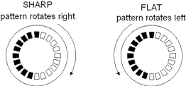 Flat tuning lowers the pitch of all notes below the regular tuning from one to six semitones. To change the number of flats, hold the FLAT button while turing the tuner on. The Flat LED will flash, and the note display will show the number of flats. Pressing the FLAT button will advance the number of flats. Pressing the CAL key will save the number of flats and return to normal operation.